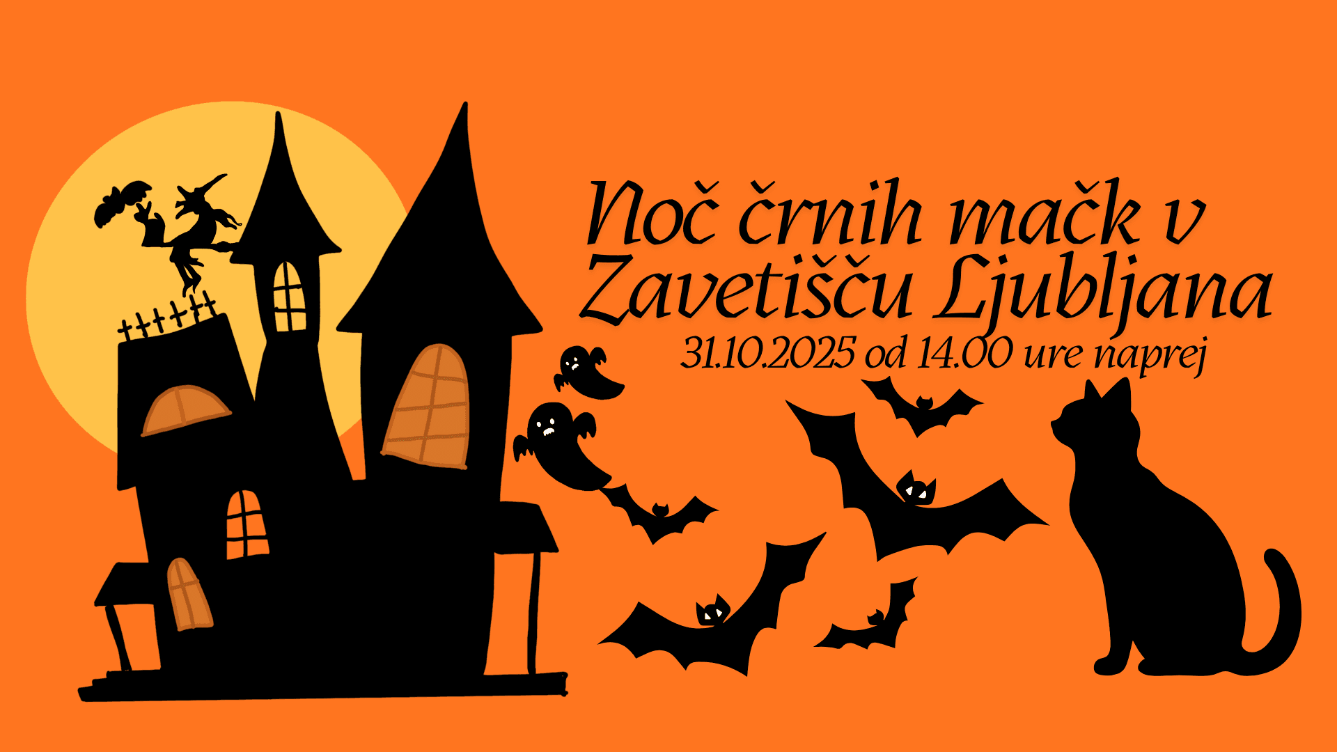 Pridružite se nam 31. 10. 2025 med 14. in 17. uro na sproščeni in poučni »noči«, kjer bomo skupaj razbijali mite o črnih mačkah, spoznavali naše varovance in odpirali vrata odgovornemu lastništvu.