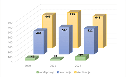 V letu 2022 smo opravili 38 sterilizacij in 43 kastracij psov.