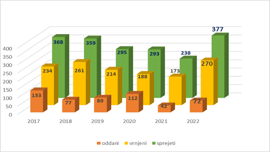 Od znanega lastnika je bilo z odločbo uradnega veterinarja trajno odvzetih 23 psov, kar je kar 17 psov več kot leta 2021. V zavetišče je bilo s strani skrbnika predanih 10 psov, kar je petkratno povečanje glede na leto poprej.