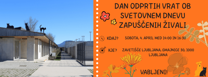 Vabilo na dan odprtih vrat Zavetišča Ljubljana na Svetovni dan zapuščenih živali
